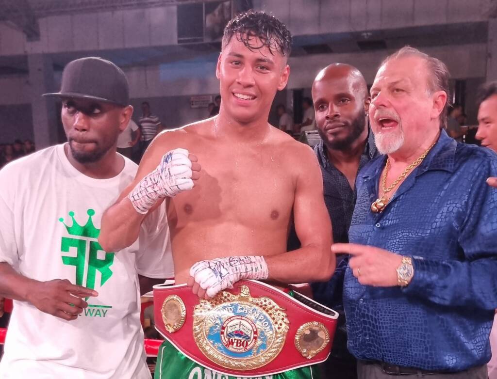 Braian Arguello luce el cinturón sudamericano que ganó ante Vergara.