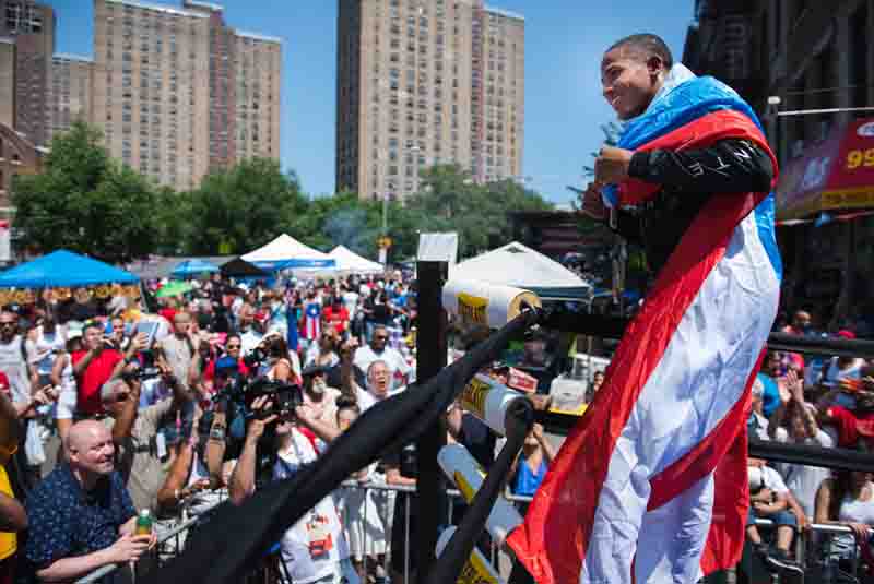 BRONX, NY (30 de mayo del 2015) – A sólo semanas de su compromiso del 13 de junio en la ciudad de Nueva York, el puertorriqueño Félix “El Diamante” Verdejo visitó “La Gran Manzana” para compartir un buen rato con sus fans durante un entrenamiento público en el Festival Cultural del Bronx.