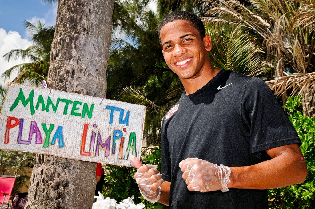 Félix ‘El Diamante’ Verdejo aportó su granito de arena para ayudar a mantener limpias las costas de Puerto Rico