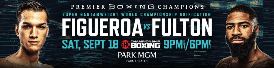 “Nosotros nos entrenamos duro para cada pelea para asegurarnos de salir a dar el 110% la noche de la contienda”, dijo Figueroa. “Mi expectativa es que Fulton sea deslumbrante y astuto con sus movimientos, y quizás él también querrá intercambiar algunos golpes. Estaremos listos para lo que sea. La gente sabe que yo siempre vengo listo para pelear y que esta pelea, mi segunda consecutiva contra un campeón mundial invicto, es emocionante en los papeles y lo será todavía más en vivo el 18 de septiembre”.