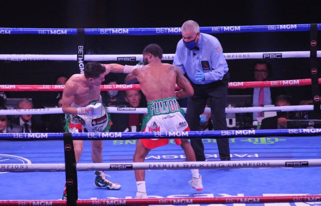 El Dolby del Park MGM hotel se vistió de gala con el tiro de unificación supergallo CMB/OMB entre Brandon Figueroa contra Stephen Fulton Junior estuvo no apto para enfermos del corazón en una guerra sin tregua donde no se asomo el cloroformo pero se dieron con todo durante 12 emocionantes rondas. Fulton no se anduvo por las ramas y desde los primeros asaltos se aseguro de poner su firma para lograr una victoria por puntos, la cual se le concedió. Brandon si estuvo cortando brecha durante toda la faena pero constantemente se encontraba con el contraataque de su viral en amores de 122 libras, porque Fulton quizá no fue el que más cartuchos gasto pero si el más contundente y efectivo. Un juez dio un veredicto tablas pero los otros dos se inclinaron por Fulton Junior por 118-112. El pronóstico de los momios no se equivoco en su oferta de poner a Fulton favorito 4-x-1. Brandon de plano no estuvo de acuerdo con los jueces alegando que él fue el que gano, que el publico lo respaldaba y se enfrasco en una leve alegata con Fulton que simplemente dijo que él se fajo los cintos de campeón, y en realidad tiene razón porque al final de la noche los jueces dicen quien gana y quien pierde si no se asoma la anestesia, y donde manda capitán no gobierna marinero.