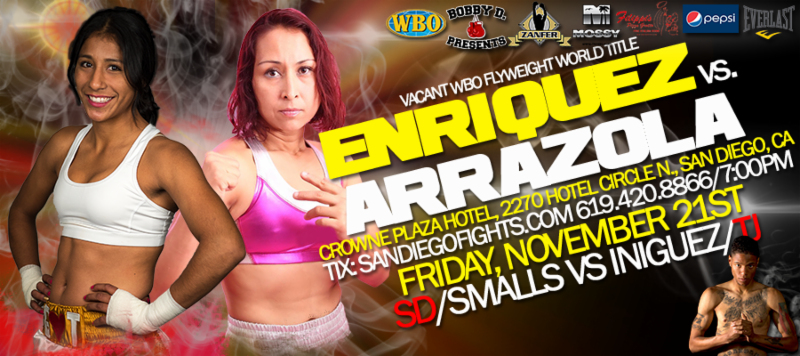 (San Diego) – With a commitment to showcase “boxing at its best”, the last fight card of their schedule is no exception for California boxing hall of fame promoter Bobby D. Presents. On Friday, November 21st, San Diego, CA, will be the host of a world title when Tijuana’s Kenia Enriquez (12-0, 6KO) faces the much more experienced Ana “La Bronca” Arrazola (20-10-2, 13KO) for the vacant WBO flyweight world title. The Enriquez vs Arrazola world title fight is scheduled for ten explosive rounds and will headline a jam-packed six bout fight card billed as “Dangerous Divas II”. The event is co-promoted with Latin America’s most successful promoter, Zanfer.