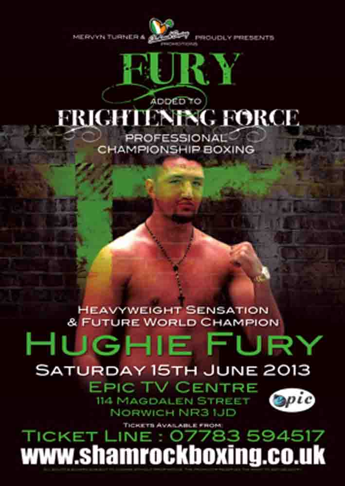 hughie_furyLondon (13 June) Young heavyweight star Hughie Fury is looking for his sixth straight professional win this weekend at the Epic Centre, Norwich.
