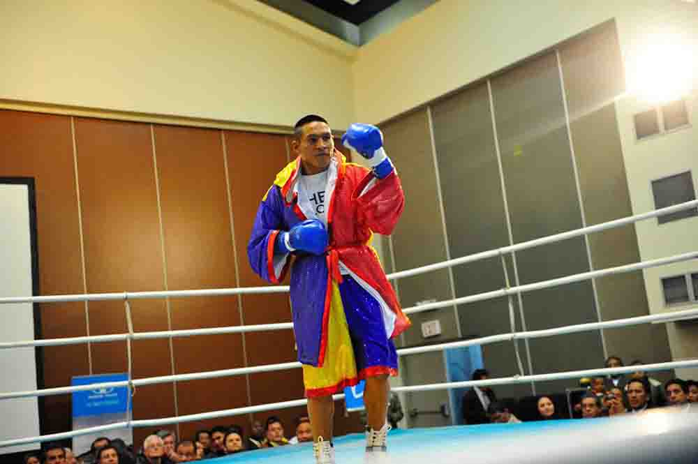 Han intercambiado palabras cada uno pronosticando su triunfo. Estará en juego las ganas de continuar progresando en el Arte de Fistiana del invicto Marlon “La Furia Negra” Aguas, con 4 ganadas, 3 por la vía rápida, contra la guerra del veterano Eduardo “Cheíto” Flores (17-12-3, 12 KO´s)-en la foto-. El ganador se abrocha el cinturón nacional de las 147 libras.