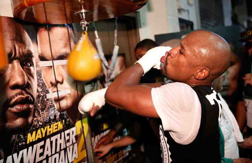 LAS VEGAS (Sept. 3, 2014) – Undefeated 11-Time, five-division world champion and perennial pound-for-pound king Floyd “Money” Mayweather (46-0, 26 KOs) participated in a media workout Tuesday, 11 days before his rematch with exciting Argentine slugger and former welterweight world champion Marcos “El Chino” Maidana (35-4, 31 KOs) in the main event of“MAYHEM: Mayweather vs. Maidana 2” on Saturday, Sept. 13 live on SHOWTIME PPV® (8 p.m. ET/5 p.m. PT) from theMGM Grand Garden Arena.