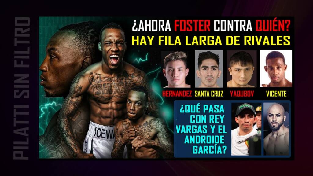 O’Shaquie Foster es la gran figura del fin de semana. Venció con autoridad a Rey Vargas y es nuevo campeón superpluma del CMB. Lo que viene a continuación, es la nueva expectativa. Foster dijo que quiere unificar, sea con Emanuel Navarrete o Héctor García. Pero, antes tiene compromisos firmados y obligatorios que no son poca cosa: dos defensas del CMB y para eso hay cuatro nombres fijos: Hernández, Yaqubov, Santa Cruz y Vicente, mientras deberá descartarse a Oscar Valdez y Robson Conceicao, pese a su alto lugar en la clasificación.