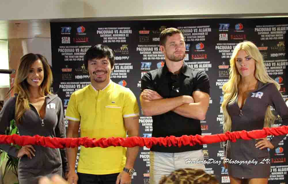Después de dos exitosas conferencia de prensa en China, el ocho veces campeón de mundo, Manny Pacquiao y su próximo rival el campeón invicto Chris Algieri llegaron el pasado jueves a los Estados Unidos y después de un día promocional en San Francisco y estuvieron en Las Vegas.