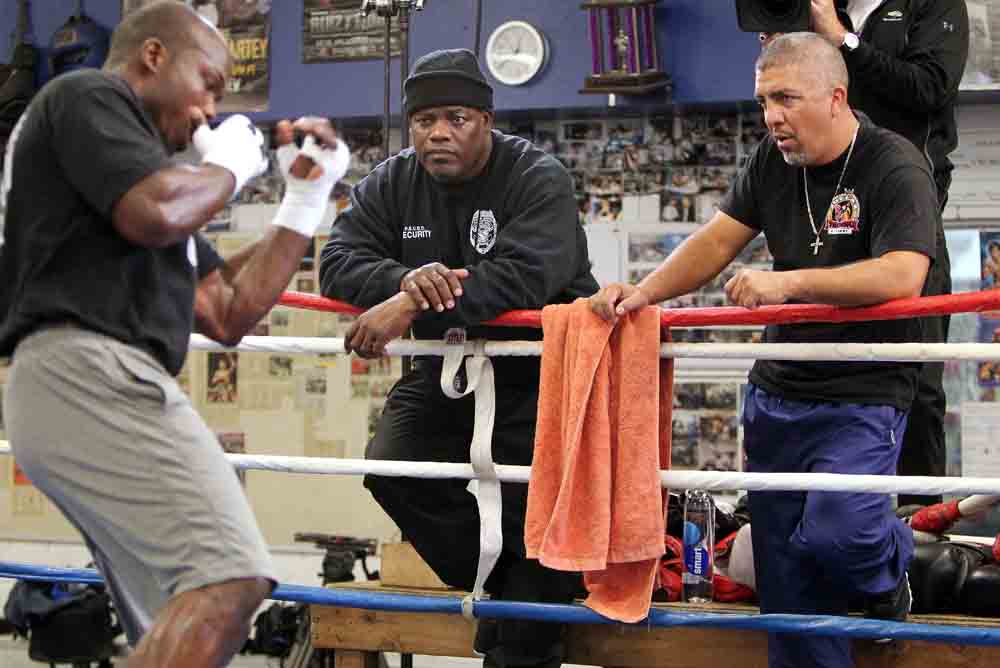 Feb. 19, 2013, Indio, Calif. — El campeon invicto de peso welter de la Organizacion Mundial de Boxeo (OMB), Timothy Bradley se prepara para regresarar al ring el proximo 16 de marzo para exponer su corona ante el ruso Ruslan Provodnikov en el duelo estelar de una cartelera que presentara Top Rank en el Home Depot Center de Carson, California.