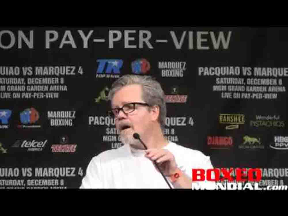 Freddie Roach, trainer to Manny Pacquiao, speaks to the press at the Marquez-Pacquiao 4 post fight presser. Juan Manuel Marquez knocks out Manny Pacquiao in the 6th round Saturday at the MGM Grand in Las Vegas. —