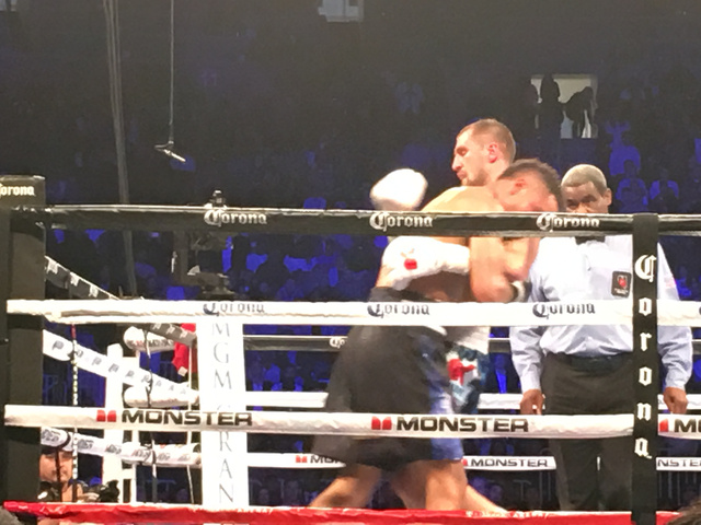 En la pelea previa le escamotearon la victoria al colombiano Pérez, que le ganó a Maurice Hooker en junior welter y los magistrados decidieron tablas, como para que a nadie se le olvidara que estaban en Las Vegas, donde cualquier cosa puede pasar por extraño e injusto que parezca…