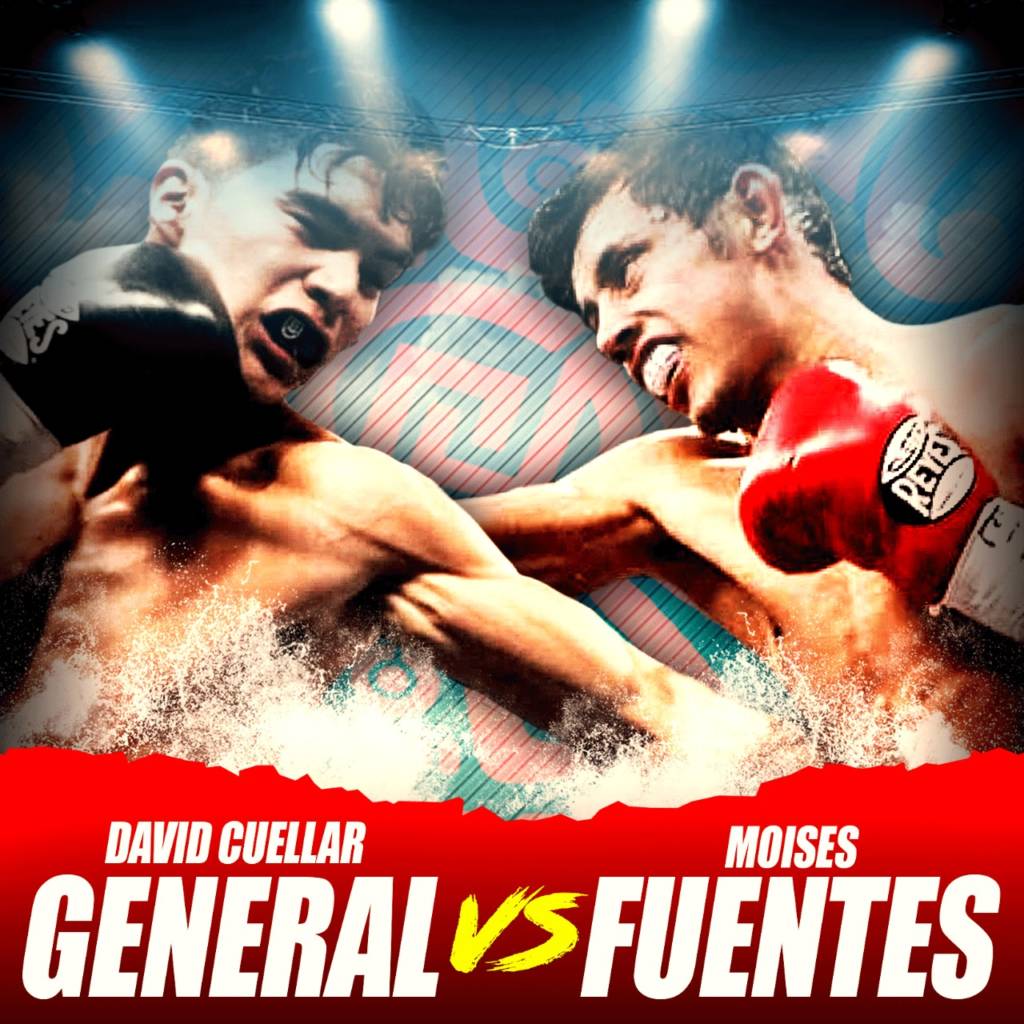 MÉXICO ‐ El queretano David ‘El General’ Cuéllar, tendrá una complicada prueba de fuego, el próximo sábado 16 de octubre cuando se mida en duelo de poder a poder con el mexiquense Moisés Fuentes, en pleito que será transmitido a toda América Latina, Estados Unidos, Puerto Rico y Canadá a través de la señal de ESPN + desde la internacional Oasis Arena de Cancún, Quintana Roo.