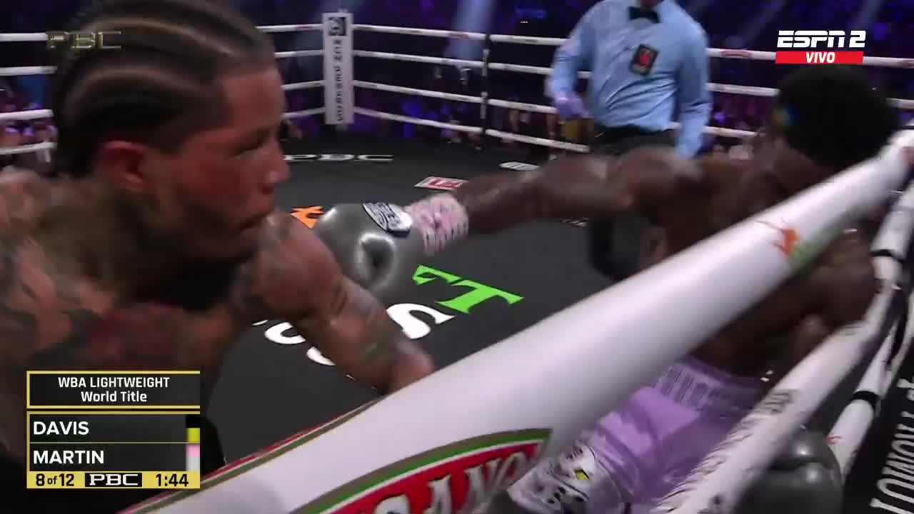 Davis retuvo su título de peso ligero de la AMB con una zurda candente y ahora tiene marca de 30-0 (28 KOs). Martin perdió por primera vez y ahora tiene marca de 18-1 (12 KOs).
