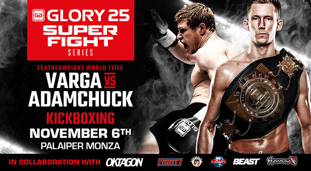 For the first time ever, one of the organization’s titles will be on the line in the headline bout of its SuperFight Series, when GLORY Featherweight World Champion Gabriel Varga (26-2, 8 KO) of Canada defends his belt against Amsterdam-based Serhiy Adamchuk (30-5, 14 KO), originally from Ukraine.