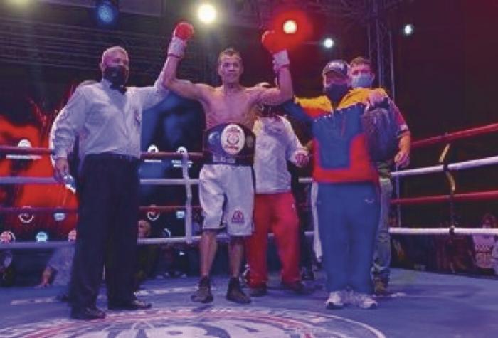 El árbitro levanta la mano a González, luego de coronarse el 6 de marzo campeón Fedelatin Wélter AMB.Cedida