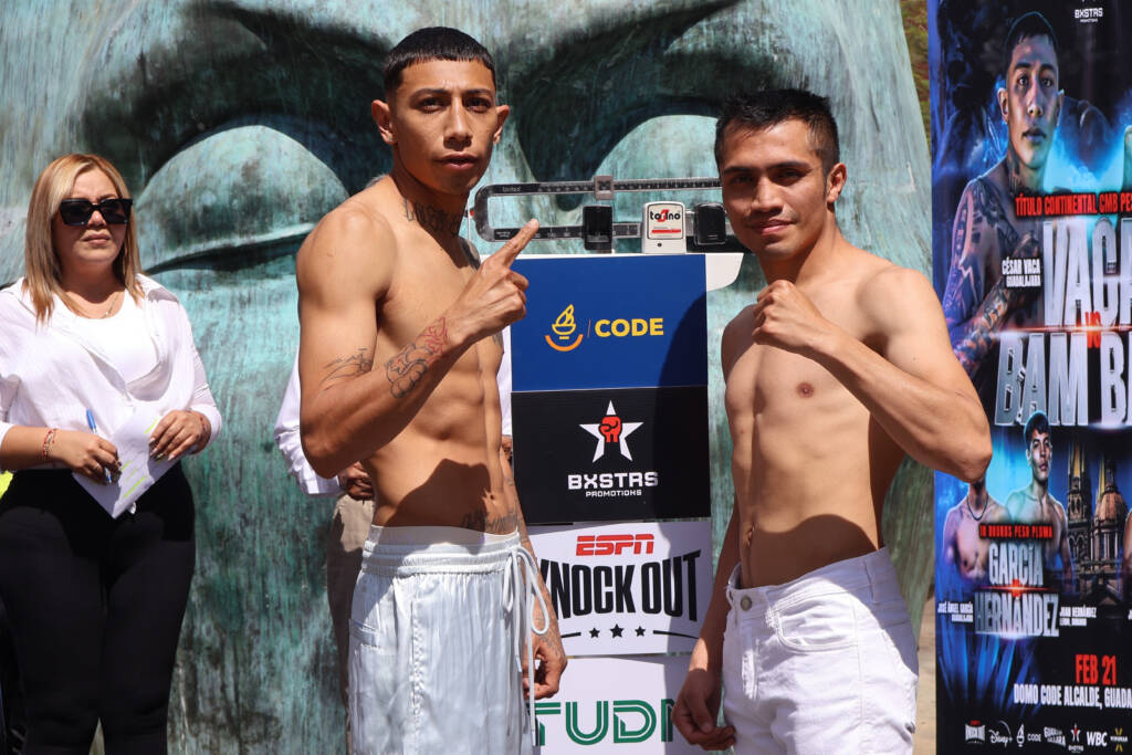 Vaca (18-1-1, 12 ko’s) subió a la báscula mostrando gran trabajo físico y una confianza a toda prueba, y registró el tope de la división Gallo, 118 libras, mostrándose en excelentes condiciones para medirse al contendiente a campeonato mundial y peleador de gran experiencia, el capitalino Joel “Trino” Córdova (14-10-2, 3 ko’s), 117 libras, en una pelea de alto riesgo para el consentido de casa ha peleado ante rivales de primer nivel como Julio César “Rey” Martínez, Francisco “Chihuas” Rodríguez y Víctor Olivo, entre otros.