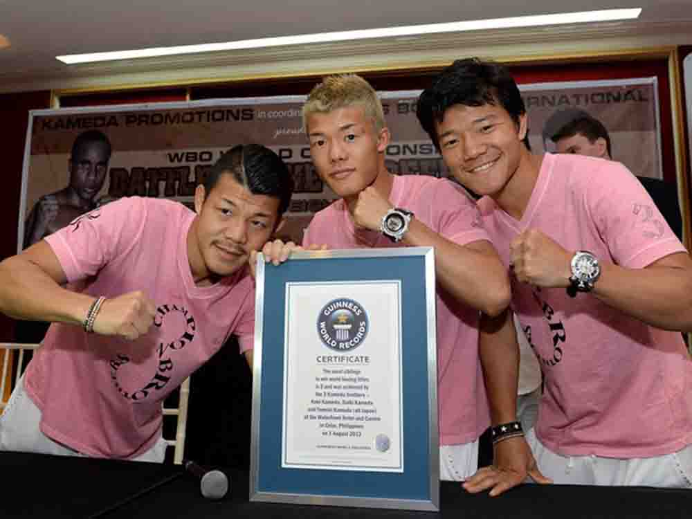 En la rueda de prensa efectuada en Cebú, Filipinas, principalmente se mencionó que, Tomoki, Daiki y Koki Kameda fueron registrado oficialmente en The Guinness Book of Records (Libro Guinness de los Records) a calidad del primer trio de hermanos campeones mundiales en la historia del boxeo universal.