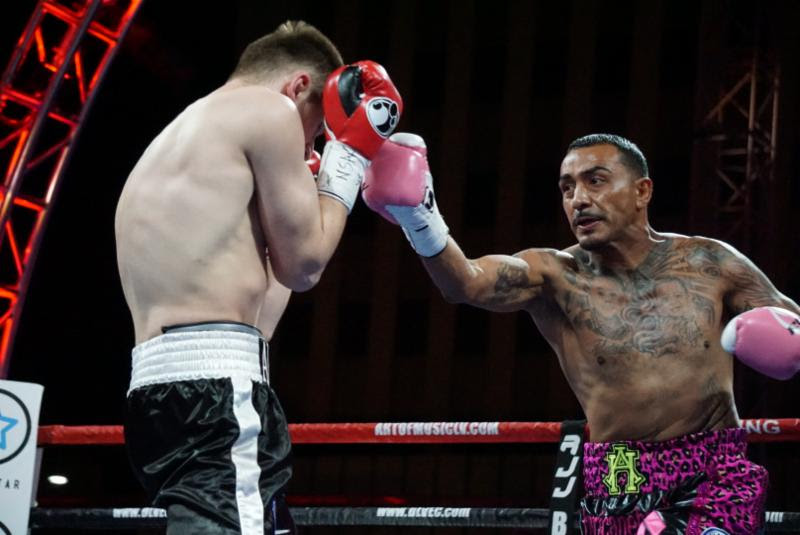 Southpaw super welterweights John “The Phenom” Vera (14-0, 9 KOs), of Fort Worth, and Phoenix’ Joey “Boxer” Ruelas (10-2-1, 4 KOs) went toe-to-toe from the opening bell and they never let up in the co-feature. Vera exploded in the round of this firestorm, battering the game Ruelas around, until referee Jay Nady halted the action in the sixth round. Vera remained undefeated and retained his NABA-USA title.