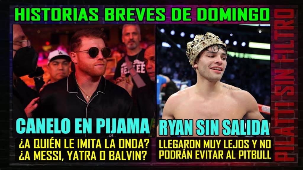 Les propongo dos historias breves en un video especial y de domingo. La nueva presentación en público de Canelo Alvarez en pijama y la pregunta del millón explicada: ¿a quién imita con esa moda?.Y lo nuevo de Ryan García: parece que ya será imposible evitar al Pitbull Cruz. Sepa por qué a partir del minuto (03:42).