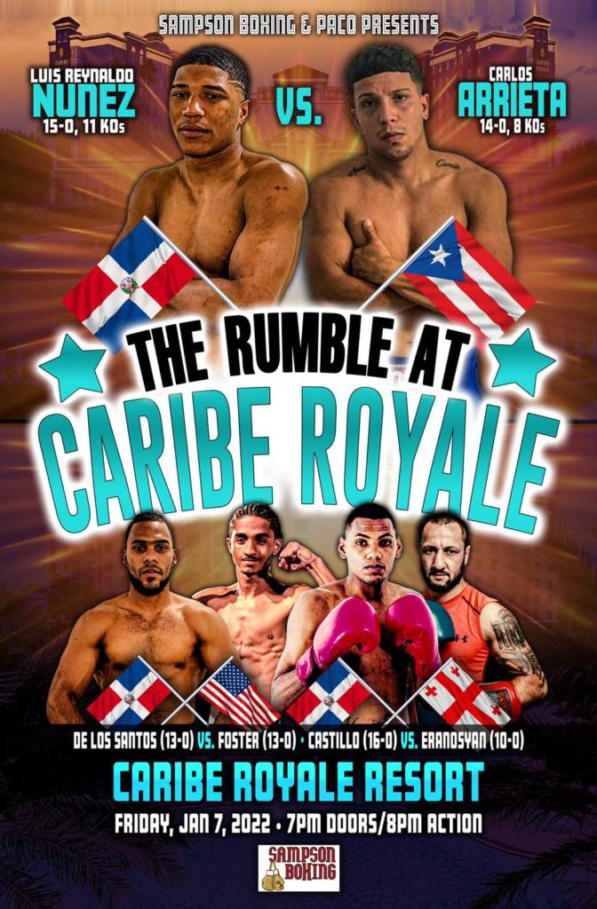 Sampson Boxing LLC arrancará a toda orquesta el 2022 presentando, el jueves 7 de enero, en el Caribe Royale Resort de Orlando, Florida, una histórica función de tres combates estelares con todos los pugilistas invictos.