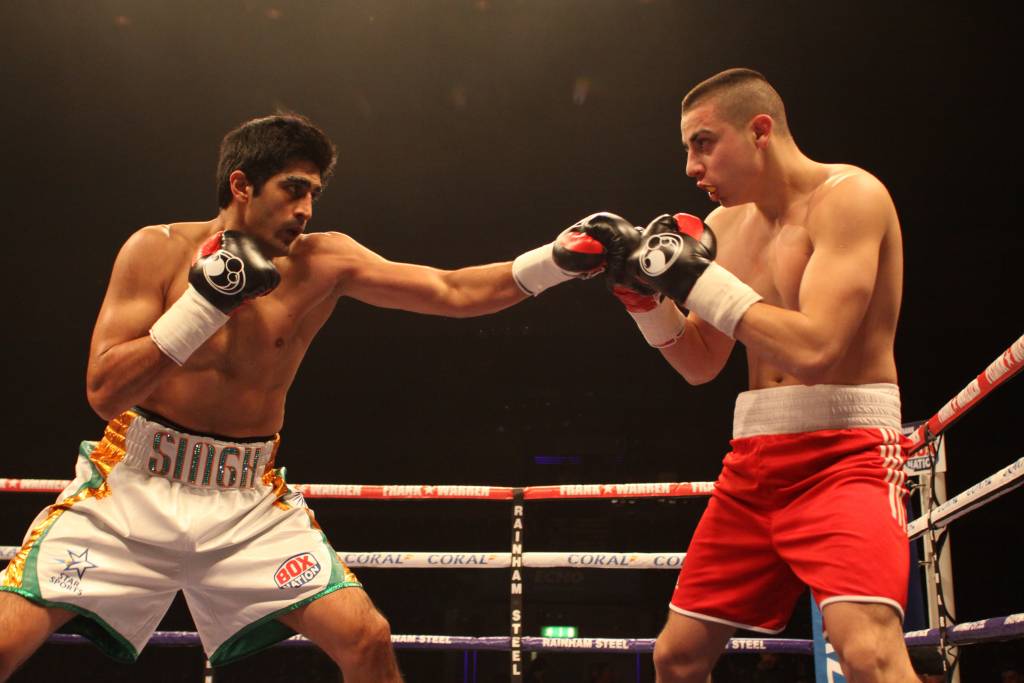 Indian boxing sensation Vijinder Singh blew away Hungary’s Alexander Horvath at the Liverpool Echo Arena to claim his fourth successive professional victory. Singh continued his red-hot winning streak by stopping Horvath in the third round with a big body shot.