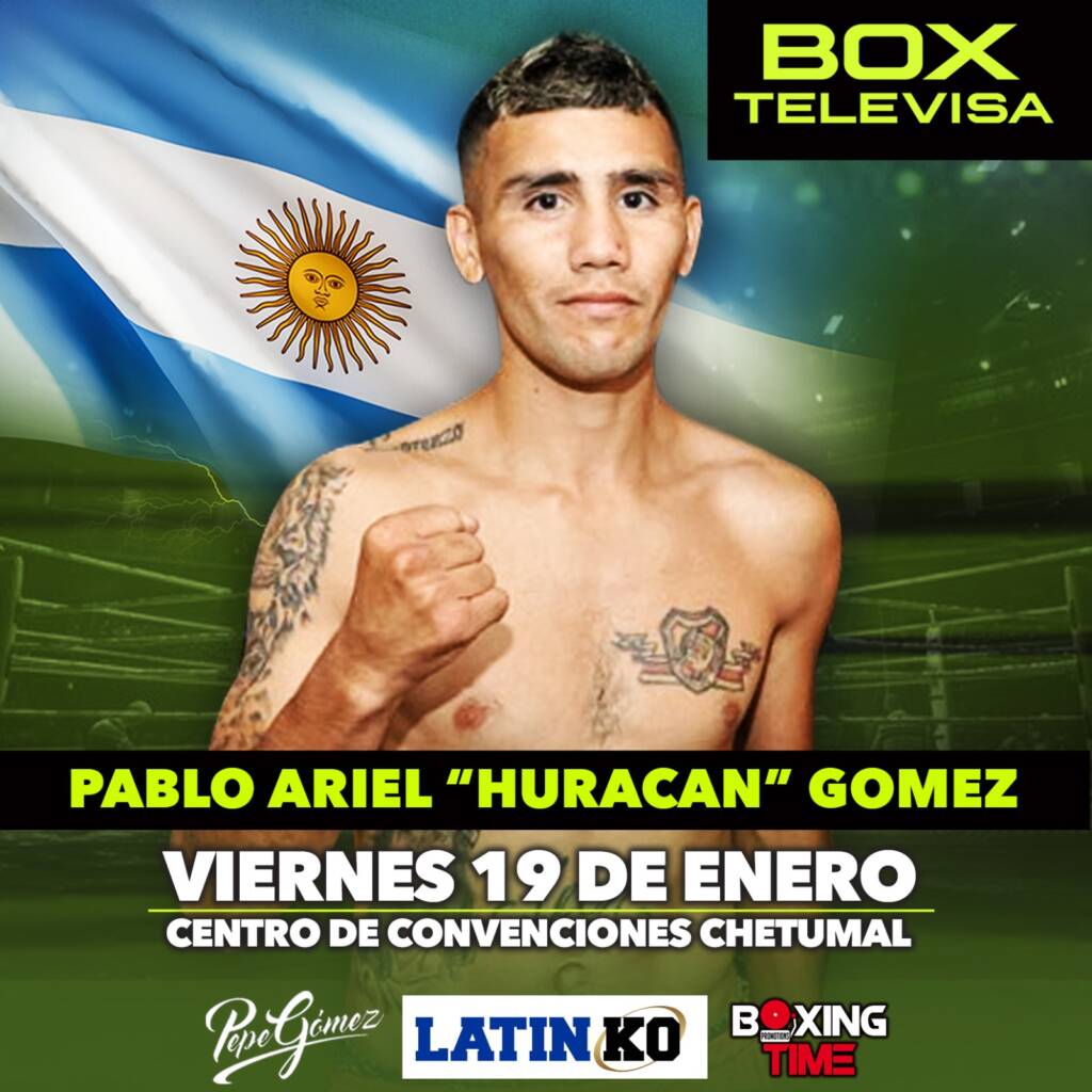 MÉXICO ‑ El invicto del queretano ‘General’ Cuéllar está en peligro, cuando se enfrente con el experimentado argentino Pablo Ariel ‘El Huracán’ Gómez, quien busca dar la campanada el próximo viernes 19 de enero en la capital quintanarroense cuando se disputen el título Internacional del Consejo Mundial de Boxeo en el turno estelar de Box Televisa.