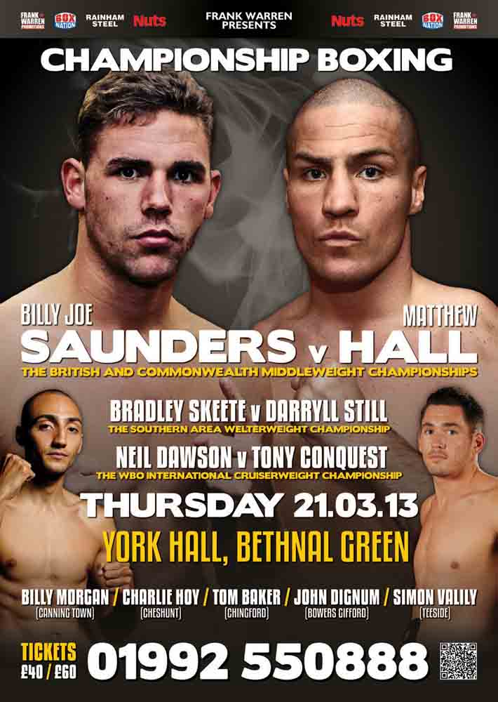 An action-packed undercard features two further title fights: Penge welterweight Bradley Skeete making the first defence of his Southern Area title against Basingstoke’s Darryl Still, and Tony Conquest’s rematch with WBO International Cruiserweight Champion Neil Dawson. Unbeaten Cheshunt super-flyweight talent Charlie Hoy and Bowers Gifford super-middleweight John Dignum complete the card.
