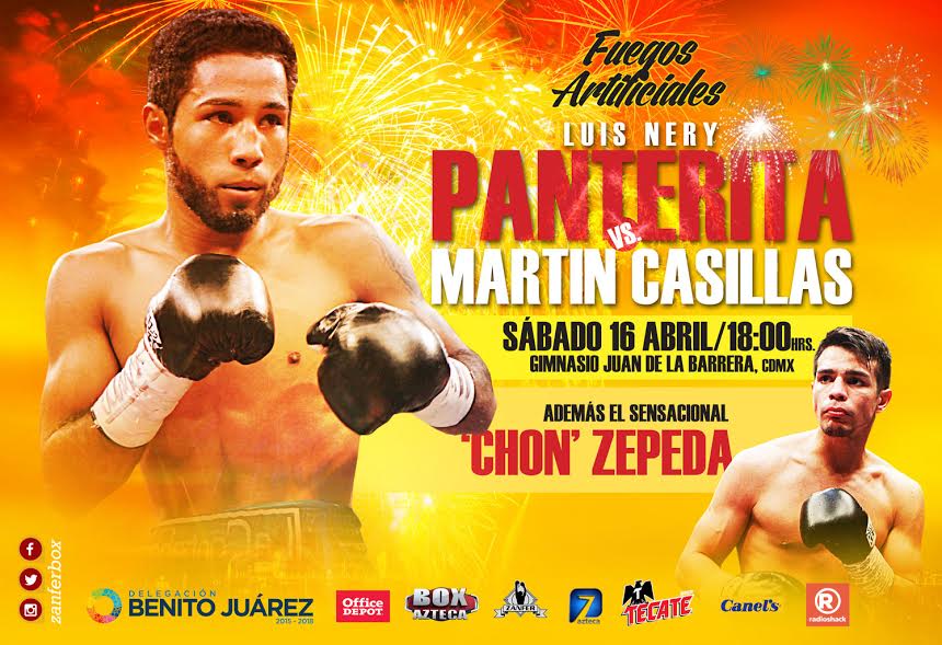 La pelea Nery (18-0, 13 kos) y Casillas (15-6-1, 9 kos) será el combate estelar pactado en Gallo Jr a diez rounds y será transmitido por Azteca 7, La Casa del Boxeo en otra gran promoción de Zanfer..