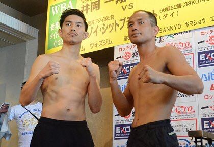 El japonés Kazuto Ioka y el Tailandés Noknoi Sittihiprasert cumplieron con la báscula al marcar 112 libras cada uno. Ahora, podrán luchar este domingo en Osaka, Japón por el cetro Mosca de la Asociación Mundial de Boxeo que actualmente está en poder del pegador nipón.