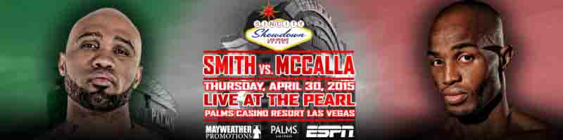 After an extended amateur career in which he competed in nearly 100 fights, McCalla is looking to bounce back from his first career defeat when he battles Smith. He dropped a narrow split-decision in Jan. 2015 to Chris van Heerden but had won his previous 20 bouts to start his pro career. The 30-year-old fights out of Baltimore and will make his Las Vegas boxing debut on April 30.