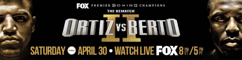 CARSON, CALIF. (March 17, 2016) – Former welterweight world champions “Vicious” Victor Ortiz (31-5-2, 24 KOs) and Andre “The Beast” Berto (30-4, 23 KOs) will meet again in a 12-round welterweight rematch in primetime on Saturday, April 30 as Premier Boxing Champions (PBC) on FOX and FOX Deportes comes to StubHub Center in Carson, Calif.