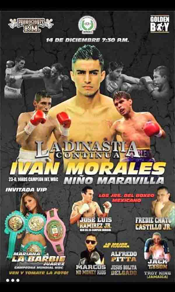 Con un palmarés de 23 combates ganados, 13 de estos por la vía del nocaut, sin conocer la derrota Iván Morales encabeza su primera cartelera en su natal Tijuana, algo que le motiva sobremanera para ofrecer su mayor esfuerzo.