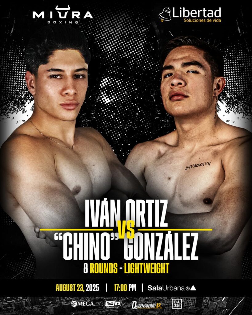 Tremendo agarrón protagonizarán el jalisciense Iván Ortiz y el mexiquense Ariel “Chino” González, al conformar uno de los turnos estelares de la atractiva cartelera de corte internacional que ofrecerá Miura Boxing el próximo sábado 23 de agosto en el centro de espectáculos Sala Urbana de Naucalpan, Estado de México, con el apoyo de Libertad Soluciones de Vida y Mega.