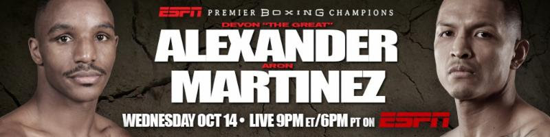 The October 14 Premier Boxing Champions (PBC) on ESPN event is headlined by former world champion Devon Alexander “The Great” (26-3, 14 KOs) taking on battle-tested Mexican Aron Martinez (19-4-1, 4 KOs). Televised coverage begins at 9 p.m. ET/6 p.m. PT with the U.S. debut of featherweight world champion Lee Selby (21-1, 8 KOs) as he takes on former three-division world champion Fernando “Cochulito” Montiel (54-4-2, 39 KOs).