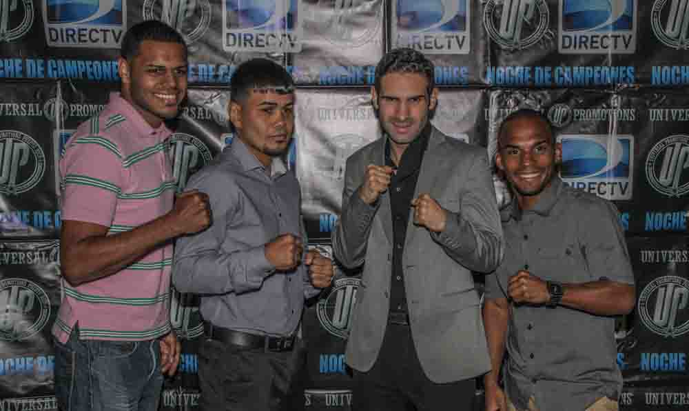 Caguas, PUERTO RICO – Universal Promotions y su Presidente, Javier Bustillo anunciaron en la mañana de hoy que el contendor mundial, Jesús Rojas (21-1-1, 15KO’s) -segundo de izquierda a derecha- tendrá el turno semiestelar de la cartelera ‘Noche de Campeones DIRECTV’, a celebrarse el sábado, 16 de mayo en el Coliseito Pedrín Zorrilla de San Juan.