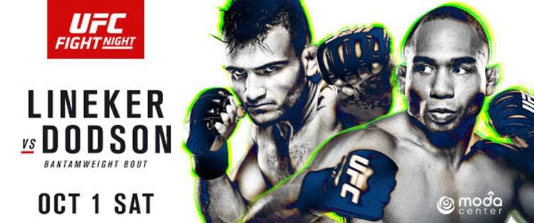 UFC FIGHT NIGHT®: LINEKER vs. DODSON will air live on FS1 at 11 p.m. ET/8 p.m. PT on Saturday, Sept. 17, with the prelims kicking off the evening on FS1 at 9 p.m. ET/6 p.m. PT and on UFC FIGHT PASS® at 7:15 p.m. ET/4:15 p.m. PT.
