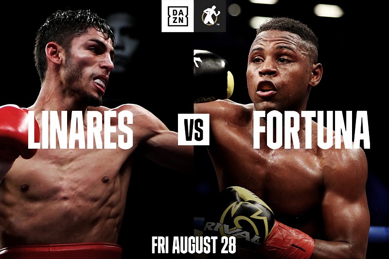 Linares vs. Fortuna es un duelo a 12 episodios por el cinto Diamante ligero del CMB presentado por Golden Boy en asociación con Teiken Promotions y Sampson Boxing. El evento es patrocinado por Hennessy “Never Stop. Never Settle.” El evento se llevará a cabo el viernes 28 de agosto en el Fantasy Springs Resort Casino y será transmitido en vivo por DAZN.