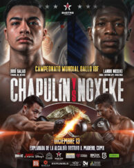 José “Chapulin” Salas (16-0-0, 10 ko’s) y Landile Ngxeke (16-1-1, 8 ko’s) disputarán el campeonato mundial Gallo de la FIB que dejó vacante el japonés Junto Nakatani, quien subió de división, y será un duelo de campeones, pues mientras el mexicano poseé el cinturón que lo acredita como campeón juvenil Intercontinental del CMB, Ngxeke posee los títulos Intercontinental de la OMB y el Internacional de la FIB, por lo que se espera un duelo de poder a poder.
