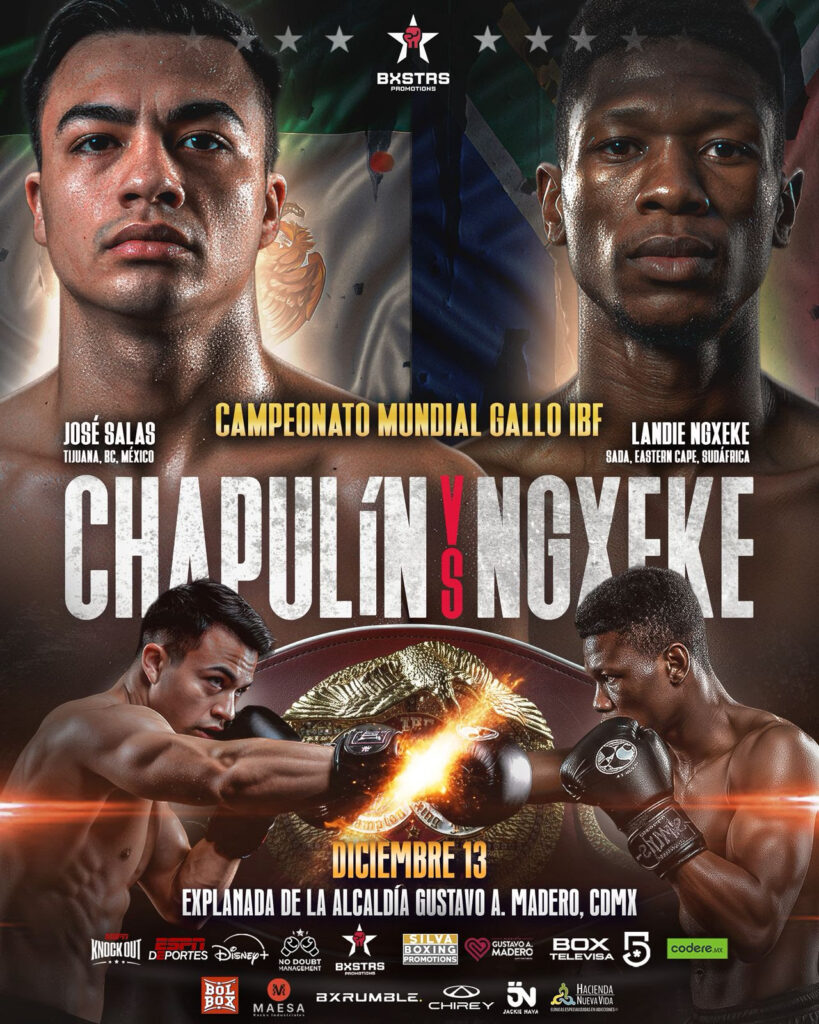 El tijuanense José “Chapulín” Salas disputará el campeonato mundial Gallo FIB (Federación Internacional de Boxeo), el sábado 13 de diciembre en Ciudad de México, enfrentándose al sudafricano Landie Ngxeke, encabezando una multiestelar gala boxística que presentará Bxstrs en sociedad con Silva Boxing, y que tendrá amplia difusión a nivel nacional e internacional, pues será transmitida en vivo a todo América Latina por ESPN Knock Out y por Box Televisa en México, tambien con transmisión a Estados Unidos por ESPN Deportes.