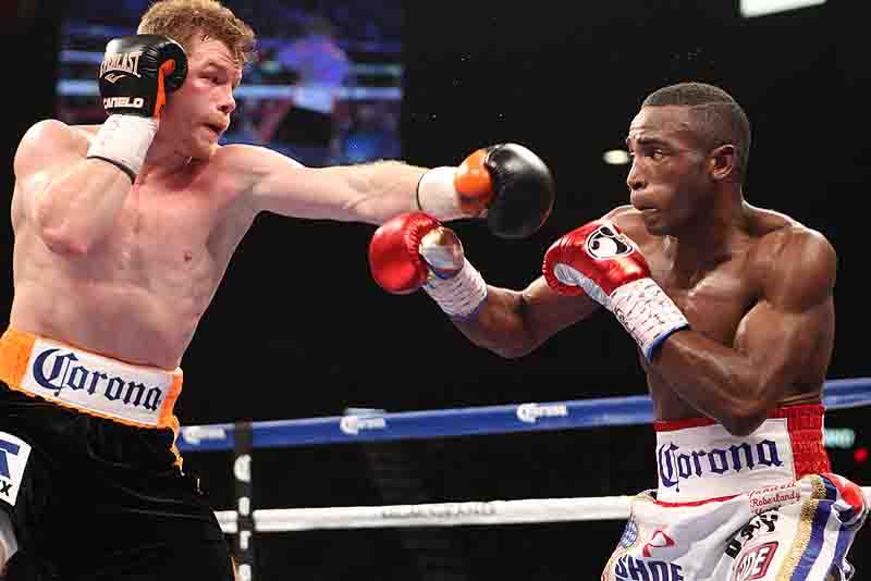 2)Control del Ring—Lara (Obligo’ a Canelo a pelear su pelea,al no saber este cortar el ring y solo perseguir con cara de malo y lanzando golpes al aire)
