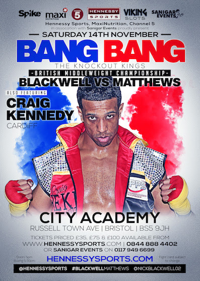 Blackwell vs. Matthews will be televised live and exclusively on Channel 5 from 10pm, Saturday, November 14. Meanwhile, Hughie Lewis Fury, Craig Kennedy and a pick of the Bristol undercard will be televised earlier in the evening on Spike.