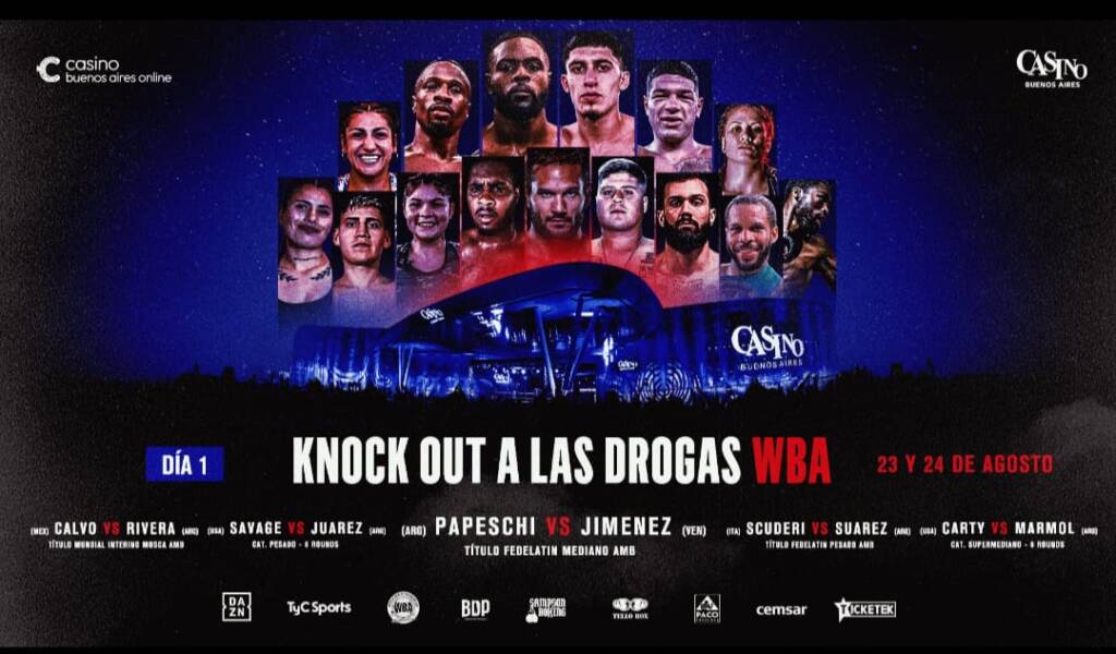 Una nueva edición del tradicional festival “KO a las Drogas” de la Asociación Mundial de Boxeo (WBA) se llevará a cabo este fin de semana en el Casino Buenos Aires, con la realización de tres veladas en dos días (una el viernes y dos el sábado) y que nuevamente contará con el aporte y copromoción de Sampson Boxing y Tello Box, con la televisación de TyC Sports para toda América y la conocida plataforma DAZN para todo el mundo.