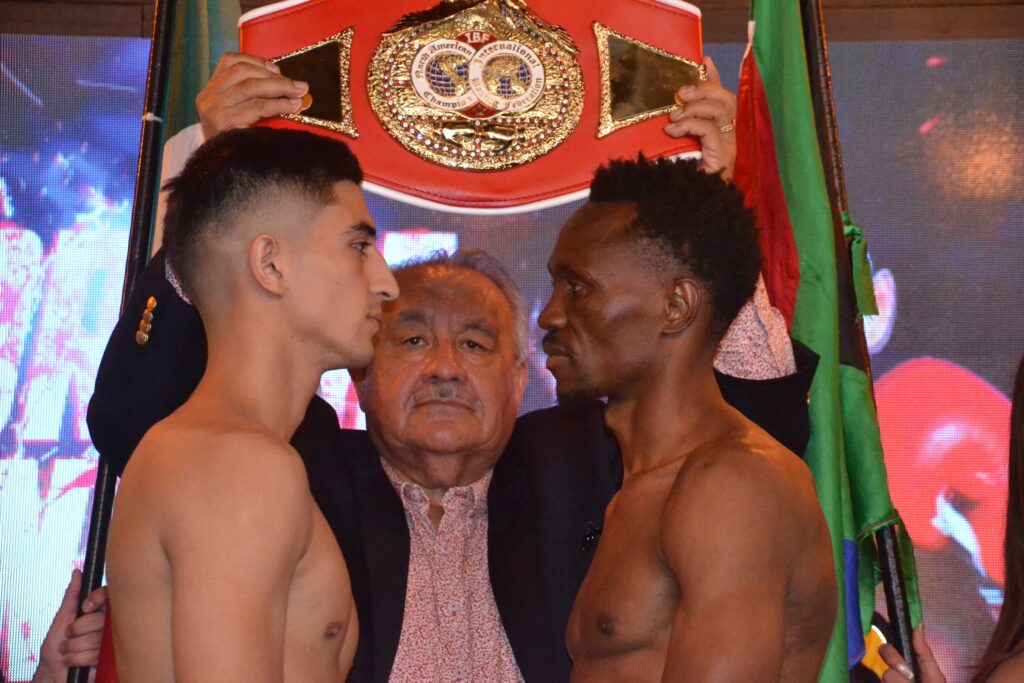 El invicto noqueador juarense Miguel ‘Fantástico’ Esparza no se achicó ante la presencia del ex campeón mundial sudafricano Tshifhiwa ‘Atomic Spider’ Munyai; y sostuvo tenso cara a cara tras el pesaje reglamentario que ambos cumplieron a cabalidad.