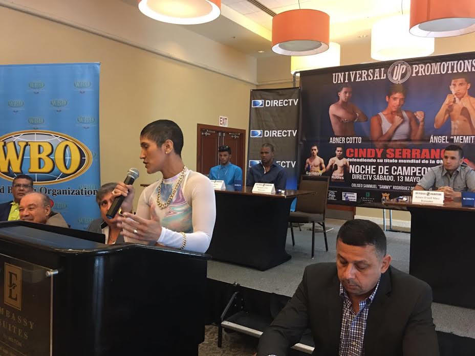 San Juan, PUERTO RICO – La compañía promotora Universal Promotions anunció este miércoles los detalles finales de la cartelera Noche de Campeones DIRECTV a celebrarse el sábado, 13 de mayo en el Coliseo Sammuel “Sammy” Rodríguez de Aguas Buenas, donde la campeona mundial Cindy “Checkmate” Serrano (25-5-3, 10 KO’s) defenderá su título femenino peso pluma de la Organización Mundial de Boxeo ante la mexicana Paola “La Fiera” Torres (10-1-1, 3 KO’s) en la pelea estelar de la velada.
