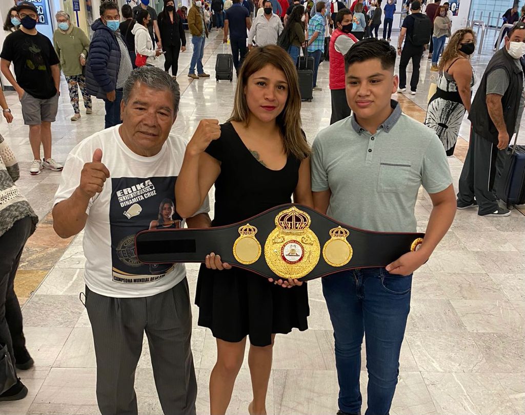 La guerrera mexicana, Erika ‘Dinamita’ Cruz recibió su cinturón que la acredita como campeona de peso pluma de la Asociación Mundial de Boxeo (AMB).