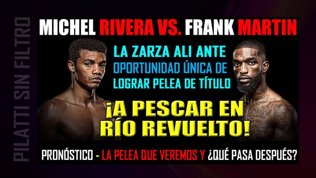 La pelea estelar del fin de semana, será una eliminatoria AMB del peso ligero. Un choque de estilos y guardias cruzadas entre Michel Rivera y Frank Martin ¿Qué pelea veremos? ¿Por quién inclino mi pronóstico? ¿Cuál será la clave esencial de la pelea? ¿Qué ocurrirá después con el vencedor cuando le toque pescar ‘en el río revuelto’? Todas las respuestas están en el video.
