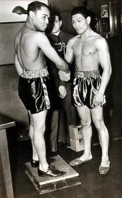 armstrong vs garcia-thomas hermanEl grandísimo púgil estadounidense Henry Armstrong (izquierda), único campeón mundial Pluma, Ligero y Welter simultáneo en los años 30, intentó conseguir la corona del peso Medio el 1 de marzo de 1940 ante el excelente filipino Ceferino García (derecha), en lo que significaría un combate de revancha para ambos.