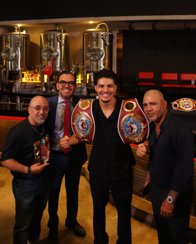 San Juan, PUERTO RICO – En un evento lleno de emoción y celebración, la Organización Mundial de Boxeo (WBO por sus siglas en inglés) y su presidente, el licenciado Gustavo Olivieri Miranda (izquierda), realizaron una grandiosa actividad de recibimiento y entrega de títulos a los recientes campeones mundiales de boxeo profesional, Xander Zayas y Jesse ‘Bam’ Rodríguez.