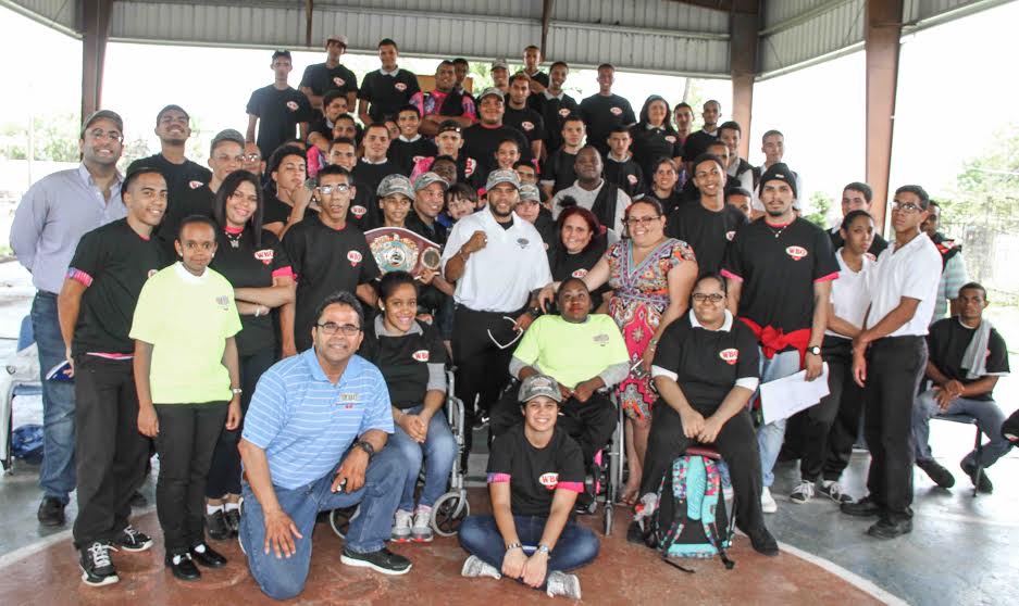 San Juan, PUERTO RICO – La Organización Mundial de Boxeo (OMB) y su exitoso programa mundial “WBO Kids Drug Free” llegaron esta mañana al Centro Vocacional Especial Eugenio María de Hostos de Puerto Nuevo en San Juan, Puerto Rico, donde se llevo un mensaje motivacional de superación para las decenas de jóvenes y maestros que participaron de la actividad.