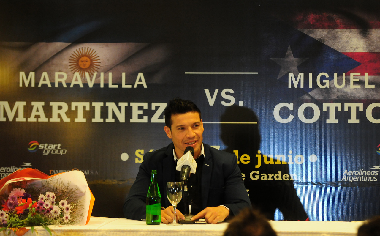 ‘Maravilla’ Martínez, quien expondrá por segunda vez su cinturón mediano del Consejo Mundial de Boxeo, ofreció una rueda de prensa en Buenos Aires previo a su encuentro en el Madison Square Garden, de Nueva York, el próximo 7 de junio.