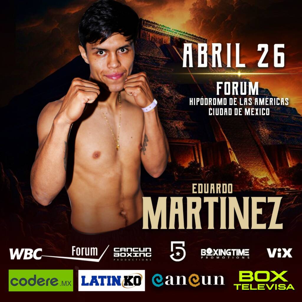 En lo que será su segundo enfrentamiento de corte internacional en el profesionalismo, el capitalino Eduardo Martínez choca el próximo 26 de abril en pleito dentro de la escala de los livianos con el argentino Matías ‘Matute’ Camaño, encabezando el respaldo de la papeleta de alto nivel boxístico que encabeza la histórica Mariana ‘La Barby’ Juárez.